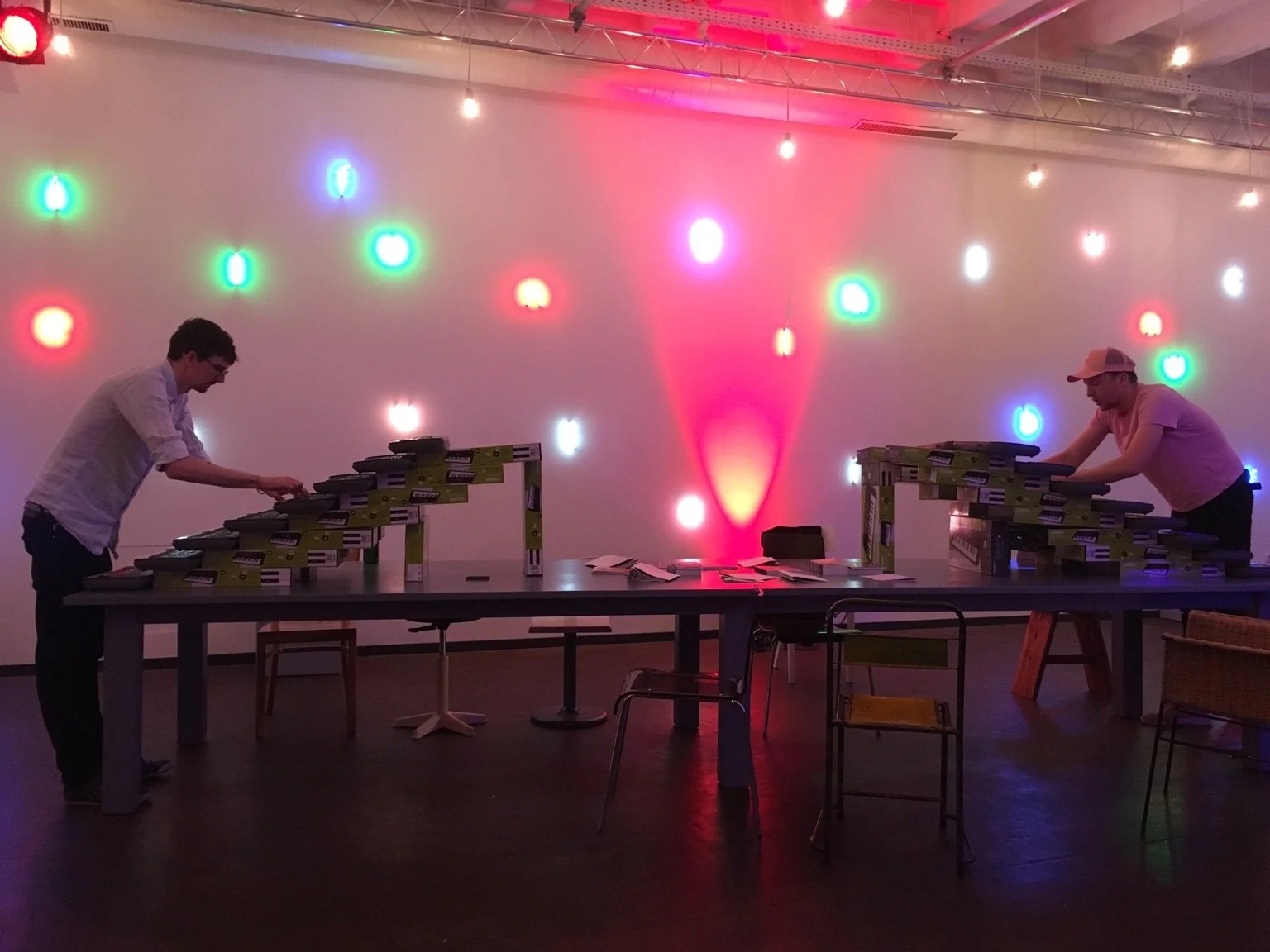 Paul Norman and Leander Ripchinsky, choose not to take separation, song or togetherness at face value, but through the act of game-playing gently coax something resembling meaning from its hiding place. As an audience we are asked to park our expectations, taking the chance to busy ourselves with rules and words and sounds and all kinds of decision-making.